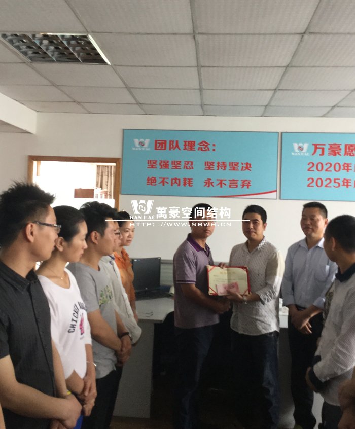 為了提高員工工作積極性,表彰先進(jìn),樹立典型,鼓勵(lì)更多的員工在工作崗位成長(zhǎng)成才,在晨會(huì)上對(duì)設(shè)計(jì)部陳斌進(jìn)行了獎(jiǎng)勵(lì),設(shè)計(jì)部經(jīng)理為其頒發(fā)了榮譽(yù)證書和獎(jiǎng)金,同時(shí)希望其他員工向優(yōu)秀員工學(xué)習(xí),努力在工作中不斷創(chuàng)新,積極進(jìn)取,為公司的發(fā)展貢獻(xiàn)自己的力量。