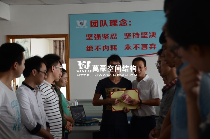 公司為工程部阮經(jīng)理頒發(fā)獎(jiǎng)勵(lì)