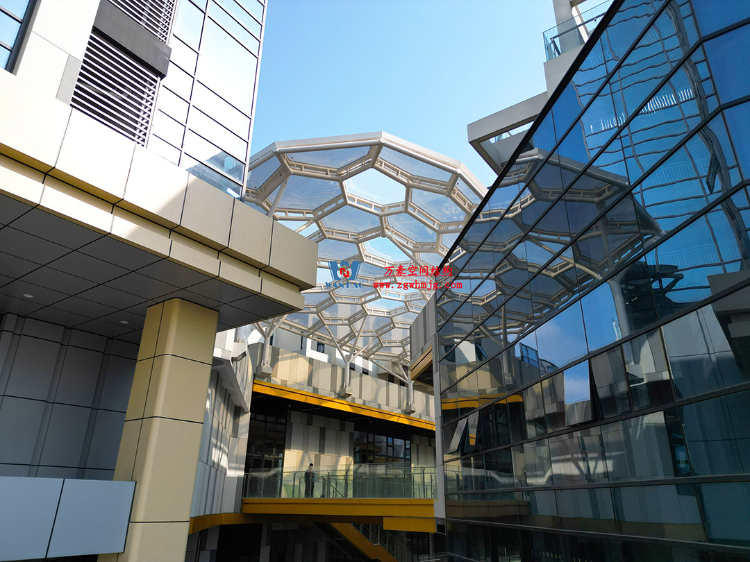 嘉興長(zhǎng)安里ETFE氣枕鋼膜結(jié)構(gòu)頂棚工程位于嘉興市長(zhǎng)安里街區(qū),該項(xiàng)目總用鋼量約440噸,ETFE膜結(jié)構(gòu)展開(kāi)面積約3200平米。