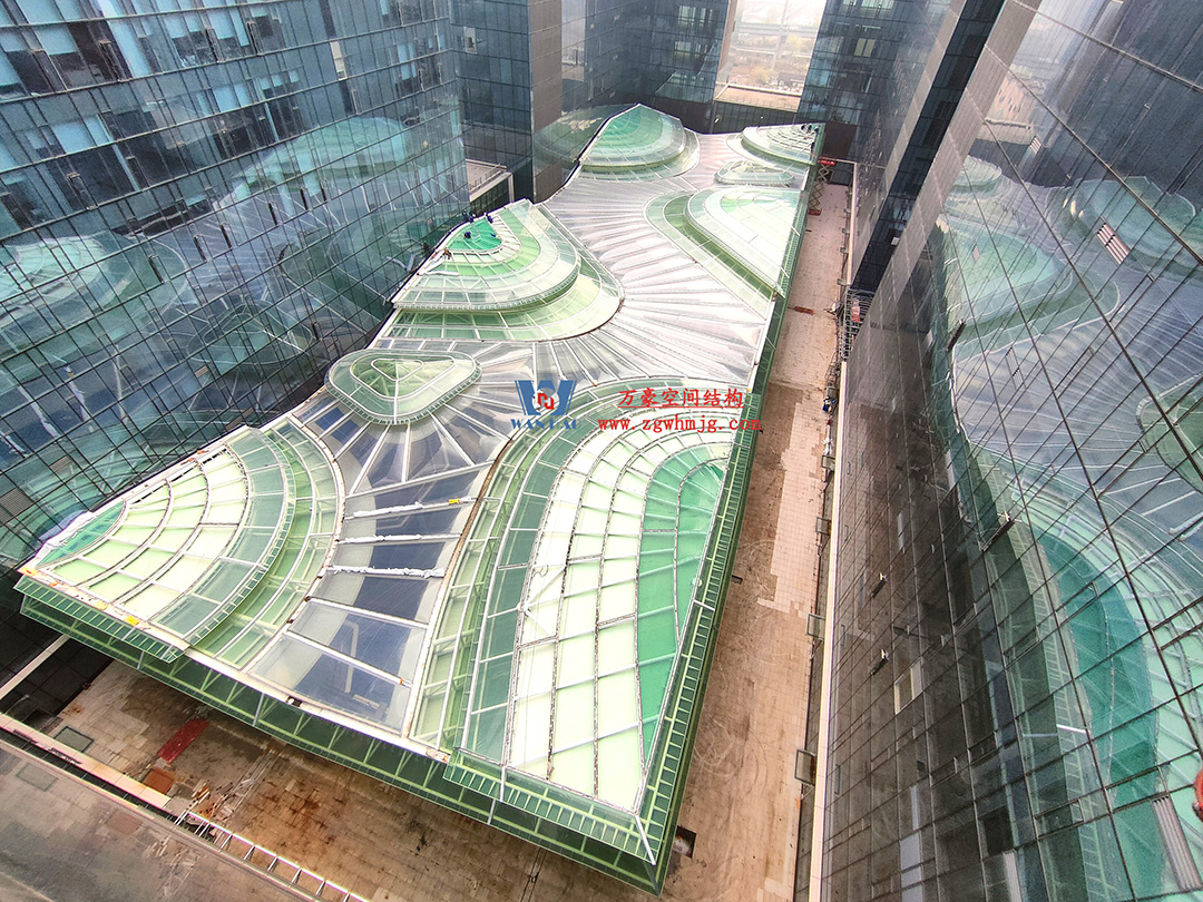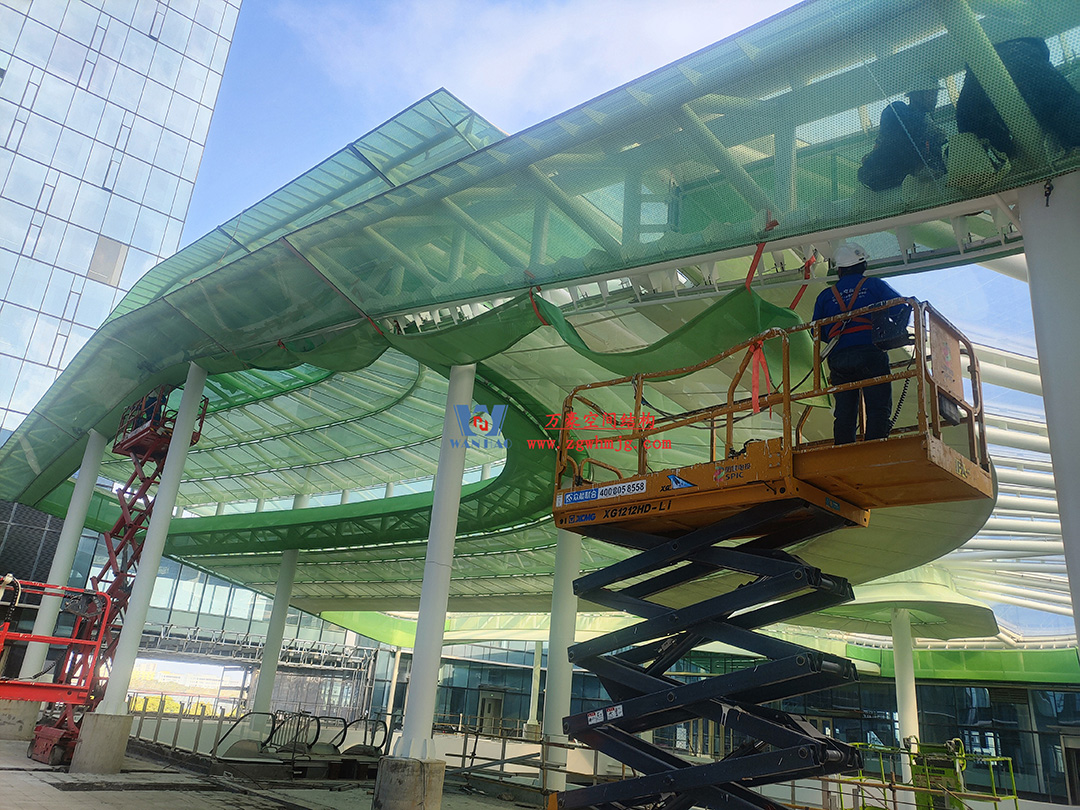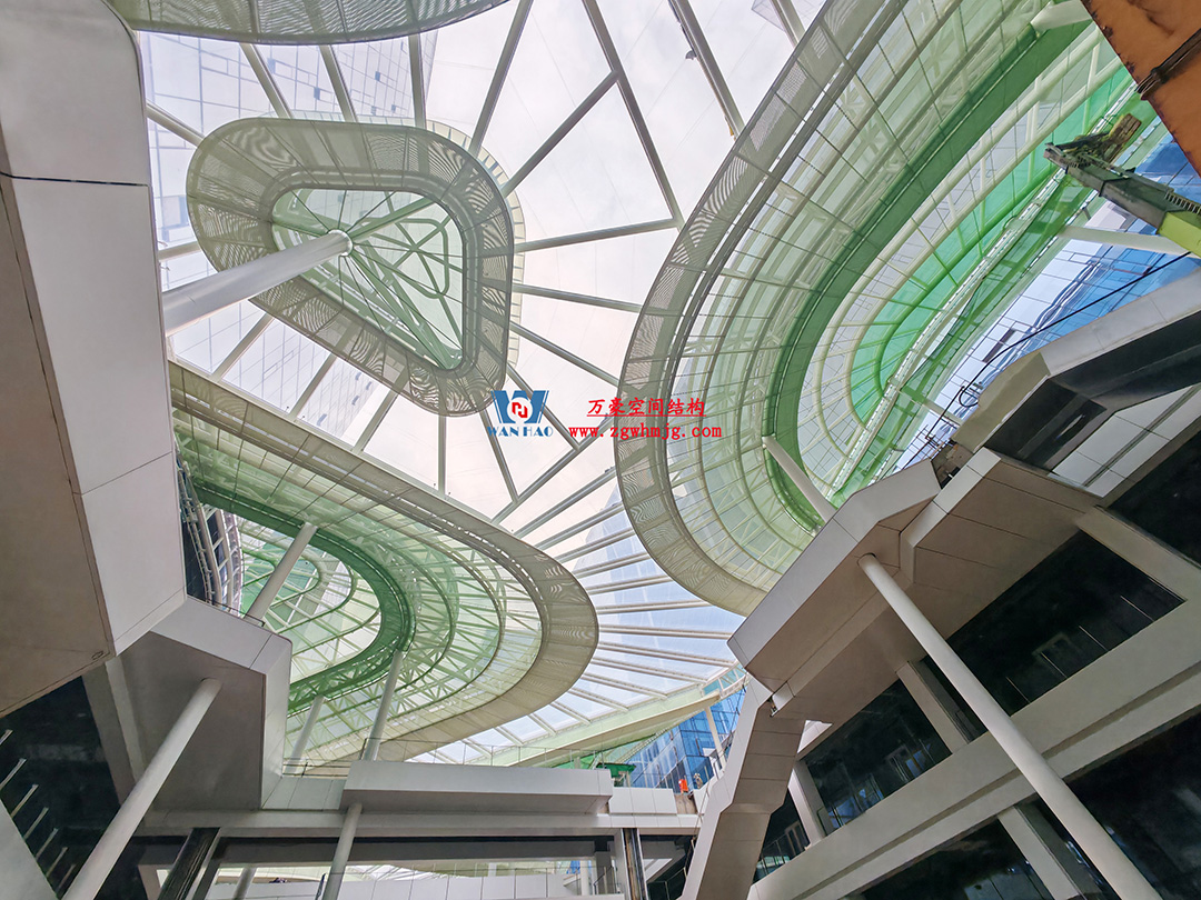 博多森谷項(xiàng)目中庭鋼膜結(jié)構(gòu)工程位于余杭區(qū)良渚板塊,地處杭州城北,良渚未來(lái)核心區(qū),城西科創(chuàng)大走廊輻射圈。該項(xiàng)目用鋼量約689噸,ETFE+網(wǎng)格織物膜展開面積12000平方米。