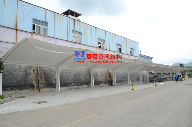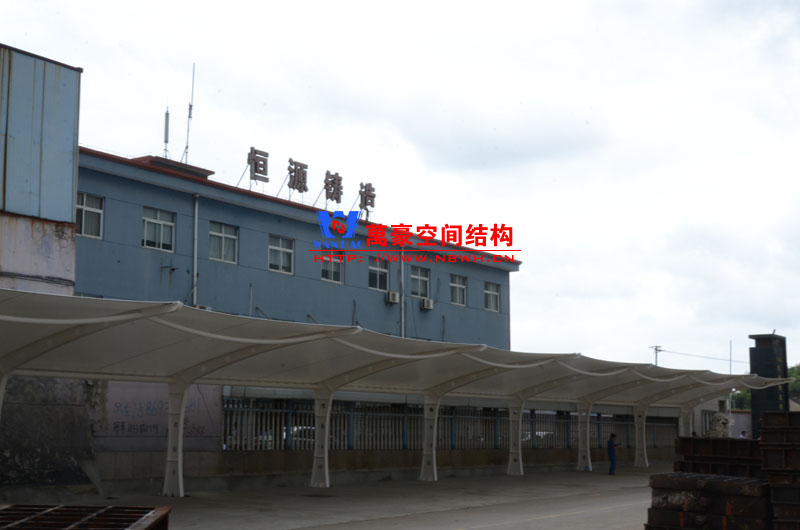 恒源鑄造膜結(jié)構(gòu)車棚項(xiàng)目由寧波萬豪空間結(jié)構(gòu)工程有限公司承建,地址位于浙江省寧波市奉化區(qū)莼湖鎮(zhèn)田隴村冒盤線北寧波恒源鑄造有限公司內(nèi),該項(xiàng)目用鋼量7噸,膜結(jié)構(gòu)展開面積342平米,共計(jì)24個(gè)車位。