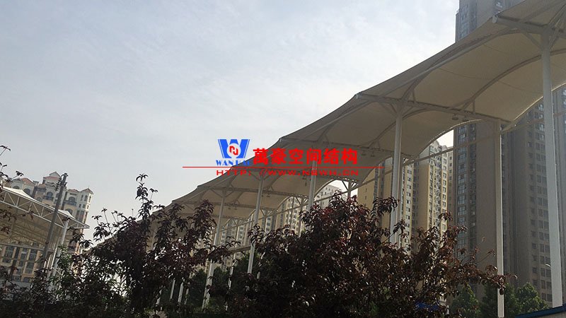 國家電網(wǎng)公司不停電作業(yè)(河南)實(shí)訓(xùn)基地膜結(jié)構(gòu)晴雨棚項(xiàng)目,由寧波萬豪空間結(jié)構(gòu)工程有限公司承建。該項(xiàng)目膜結(jié)構(gòu)展開面積9000平米,用鋼量500噸。