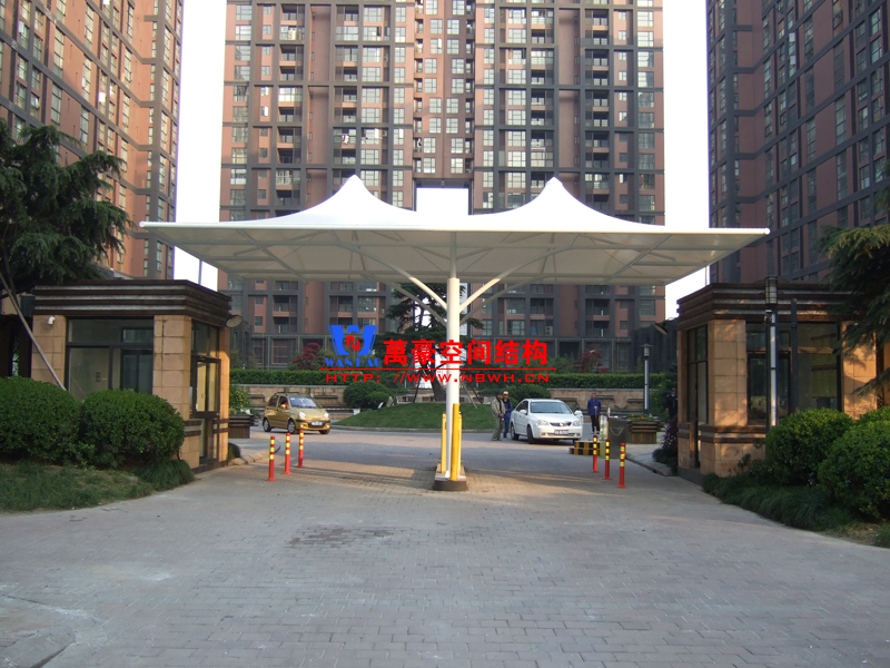 出入口膜結構建筑,指的是在建筑物的出入口搭建膜結構,起到遮陽擋雨的作用。例如收費站、小區(qū)門口、企業(yè)門口、地下車庫出入口等。