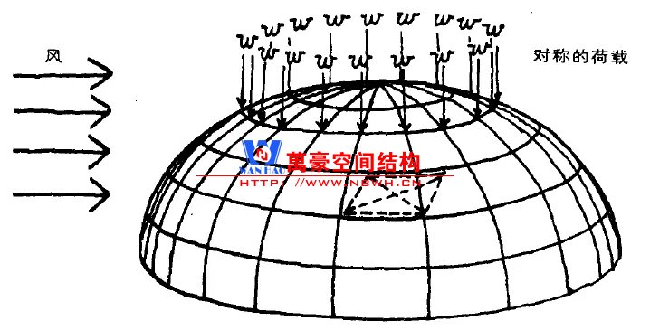 網(wǎng)殼受力方式為薄膜作用,屬于拱結(jié)構(gòu)向三維的拓展;因此,與拱類似的問題會(huì)出現(xiàn)在網(wǎng)殼上。比如:整體穩(wěn)定問題;不對(duì)稱荷載敏感等。