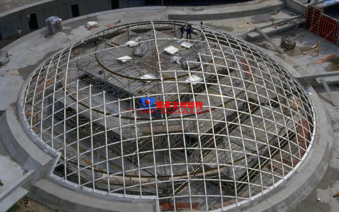 于是人們開始用效率更高的單層網(wǎng)殼來(lái)代替混凝土薄殼。但網(wǎng)殼同樣制作、安裝同樣比價(jià)困難,那網(wǎng)殼發(fā)展的方向在哪里呢?