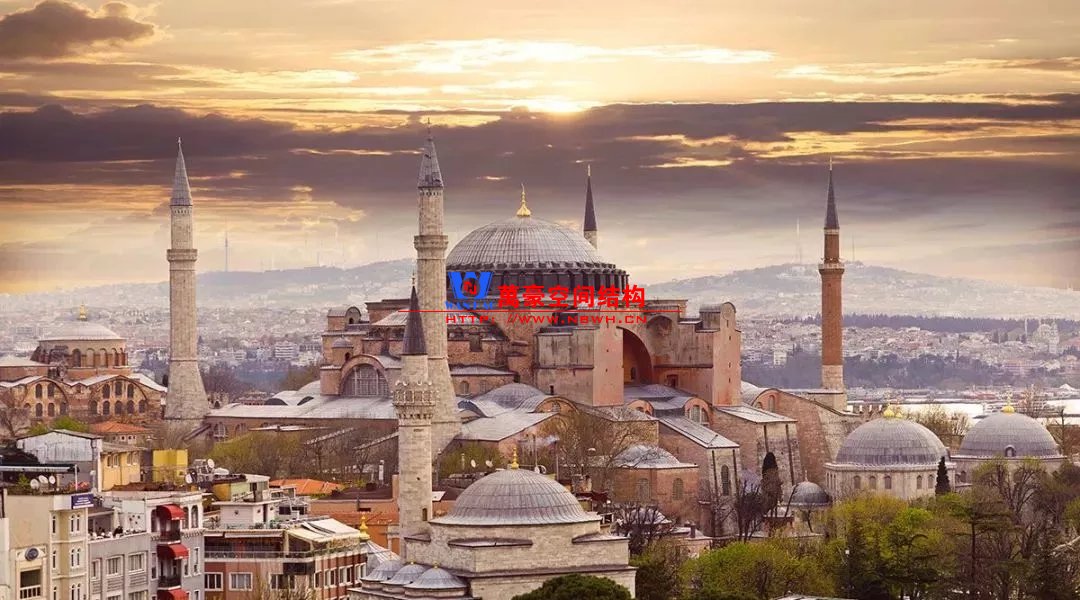 一千五百年前的圣索菲亞大教堂也因其巨大的穹頂而聞名于世。穹頂直徑31.24米。這座著名的穹頂也算是命運(yùn)多舛,自建成之后由于穹頂自身巨大的側(cè)推力曾先后倒塌三次。工程師也曾試圖通過增加墻厚、增設(shè)飛扶壁、增加穹頂矢高等方法加固,但依然沒有結(jié)束它不斷倒塌的命運(yùn)。