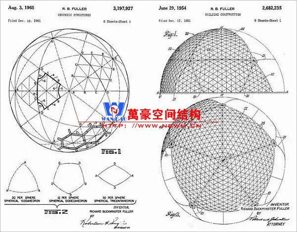 原理看不懂沒關(guān)系,直接看案例。1967年富勒就將這一設(shè)計(jì)思想應(yīng)用于蒙特利爾國際博覽會(huì)美國館的設(shè)計(jì)上,場(chǎng)館是一3/4球形建筑,直徑為76米,外表面覆蓋著透明的亞克力板。這座展館成為美國先進(jìn)科技的象征,當(dāng)年可謂萬眾矚目。