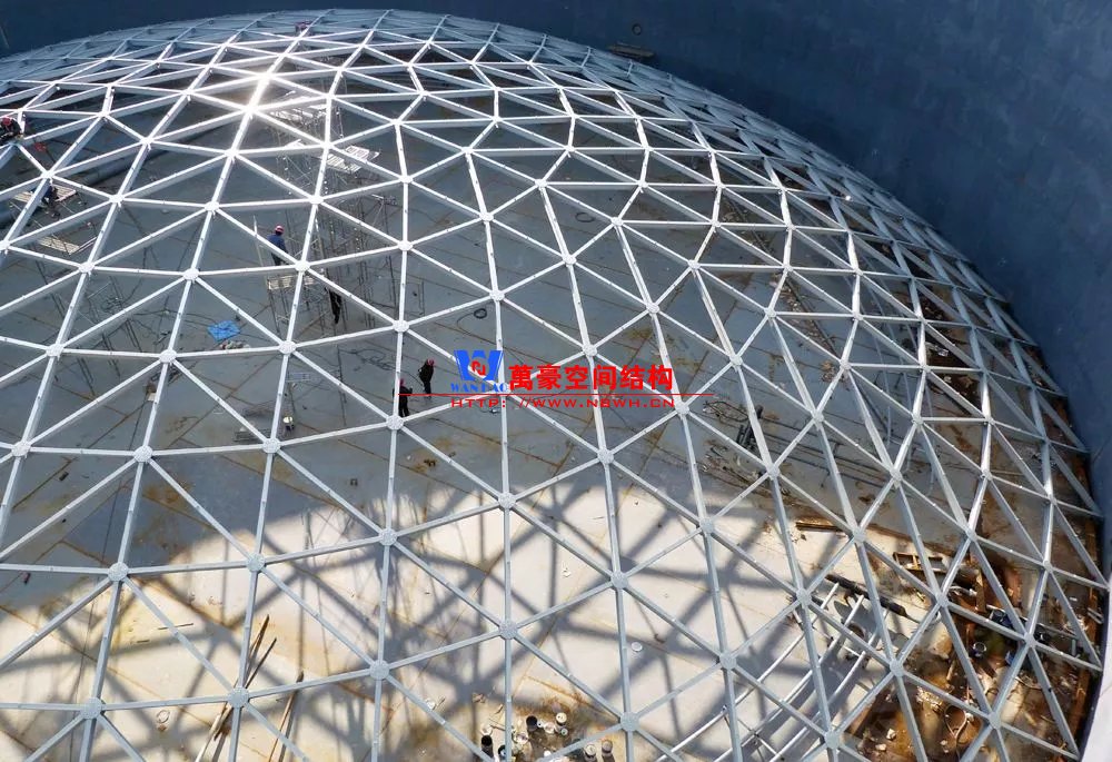 但是由于焊接會(huì)造成鋁合金強(qiáng)度大幅下降,鋁合金通常采用圓盤連接節(jié)點(diǎn)。而圓盤節(jié)點(diǎn)抗剪性能差,不適合用在以受彎為主的梁式結(jié)構(gòu)。殼體結(jié)構(gòu)內(nèi)以壓應(yīng)力為主,構(gòu)件設(shè)計(jì)均為穩(wěn)定控制,對(duì)節(jié)點(diǎn)需求低。因此,鋁合金結(jié)構(gòu)特別適合用于受壓為主的球殼結(jié)構(gòu)。