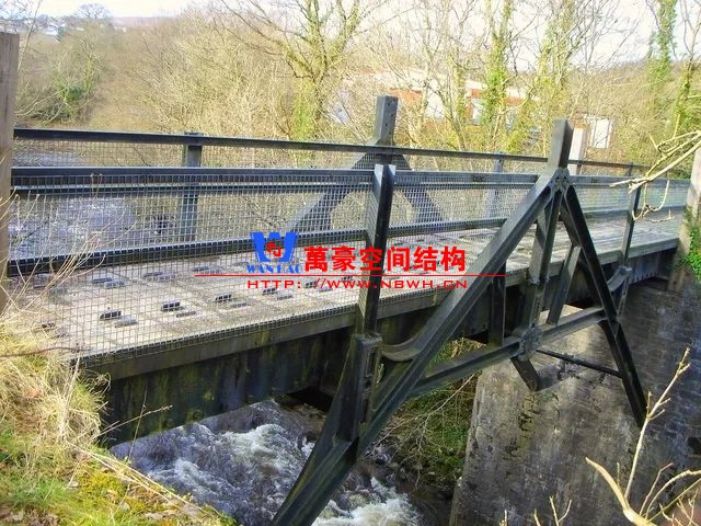 位于上海的外白渡橋是中國(guó)的第一座全鋼結(jié)構(gòu)鉚接橋梁,于1908年1月20日落成通車。該橋?yàn)橄鲁惺胶?jiǎn)支鋼桁架,兩孔跨經(jīng)組合各52.12米,橋面鋪設(shè)電車軌道。
