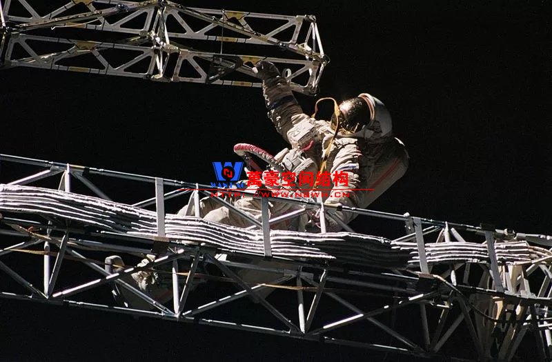 宇航員在太空為空間站組裝桁架結(jié)構(gòu)