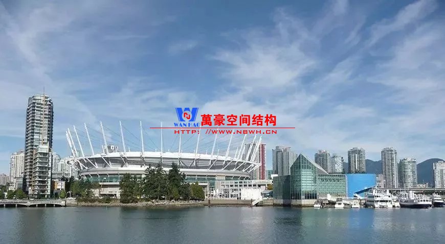 加拿大卑詩省體育館在1981年到1983年間建造完成并于1983年6月19日正式開放。其開始建造時(shí)是為了用作不列顛哥倫比亞雄獅隊(duì)和溫哥華白帽隊(duì)的主場。建成時(shí)這座體育場的屋蓋結(jié)構(gòu)為氣承式膜結(jié)構(gòu)穹頂,在當(dāng)時(shí)該穹頂屋蓋是世界上最大的之一。該穹頂結(jié)構(gòu)屋蓋在2010年和2011年間的翻新工程中被環(huán)索屋蓋結(jié)構(gòu)替代。