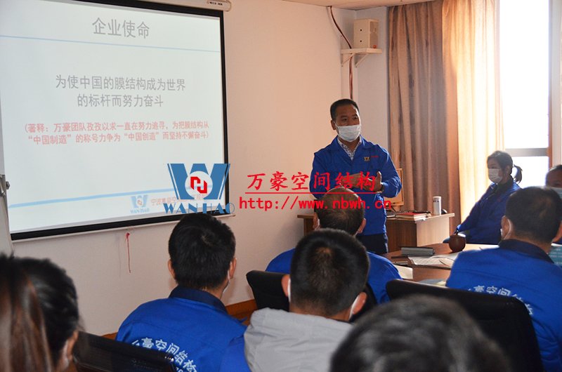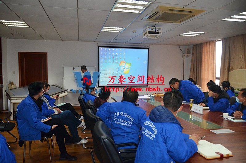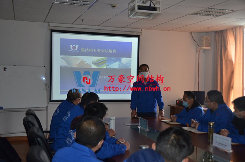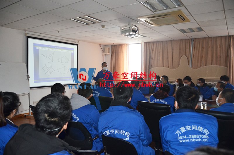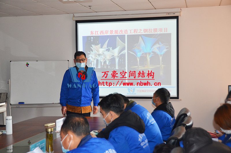 膜結(jié)構(gòu)專業(yè)知識宣講會在萬豪空間結(jié)構(gòu)公司會議室進(jìn)行,培訓(xùn)內(nèi)容由萬豪總經(jīng)理張總及工程部各項(xiàng)目經(jīng)理進(jìn)行主講。