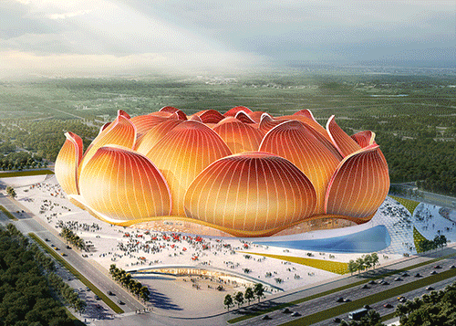 與國外頂級球場普遍采用的橢圓造型不同,廣州恒大足球場以荷花綻放為設(shè)計(jì)理念,凸顯濃郁的中國文化特色,既代表球場成為“花城”廣州永久盛開的城市名片,也寓意著中國足球擁有高潔堅(jiān)韌的品格,在國際競技場上爭奇斗艷。主色調(diào)采用炙熱的金紅色,這不僅是中超霸主廣州隊(duì)的隊(duì)服色,也是廣州這座“足球第一城”的代表色。