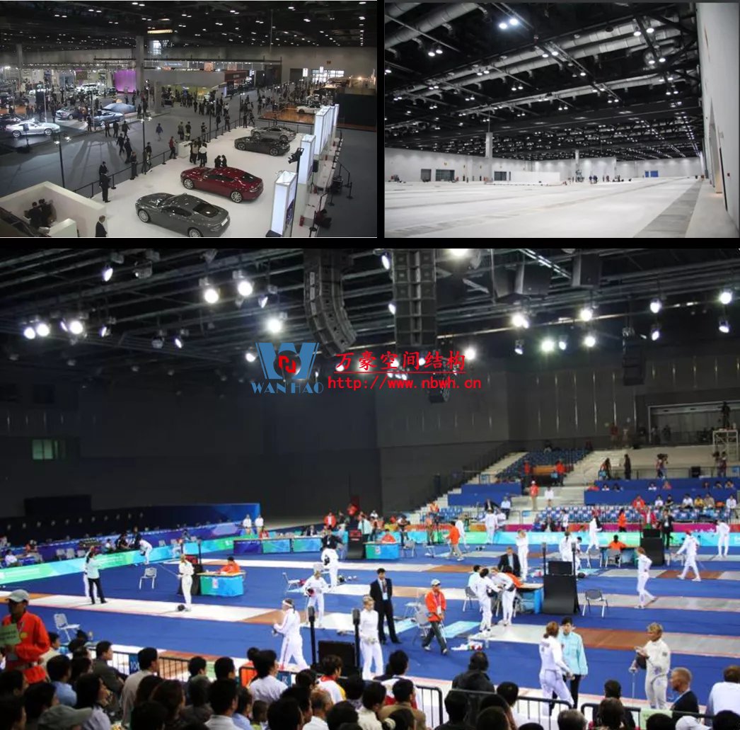 通用空間概念為現(xiàn)今大量建造的體育場、體育館、展廳等提供了功能合理性的理論基礎(chǔ)。盡管這些建筑大多只能稱為“多用途場館”,與密斯描述的空間通用性相距甚遠(yuǎn)。從某種意義上來說,通用空間在實踐中更多的表現(xiàn)為空間的多功能特征。同一大空間中多種活動的需求與強調(diào)功能分區(qū)的觀點截然相反,提出了實現(xiàn)建筑、結(jié)構(gòu)、機(jī)電整體性技術(shù)整合的新要求。