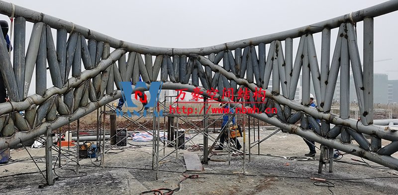 目前主桁架基本拼裝完成,準備開始吊裝。