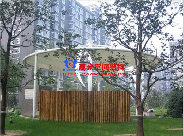 景觀膜結(jié)構(gòu)工程能提供豐富多彩的用途,并與園林景觀溶為一體。創(chuàng)造出讓人們盡情享受的快樂空間。充分展示了結(jié)構(gòu)構(gòu)件清晰受力的藝術(shù)之美,它巧妙的整合周圍的環(huán)境,給人們一種高貴典雅、浪漫溫馨之感。另外由于張拉膜材料本身特有的顯色性,在夜間彩燈的映射下能形成絢麗繽紛的景觀。不僅為人們提供遮陽避雨的空間。同時,更由于這種生動活潑的造型能給人們帶來時尚、輕松的休閑感受,所以廣受歡迎。