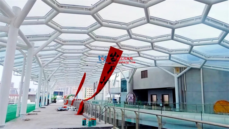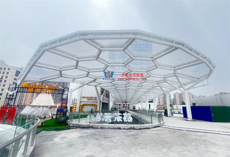 廣州茂名總匯天街商業(yè)街ETFE膜結構工程地處電白市區(qū)繁華CBD路段,毗鄰電白萬達廣場,2萬平方城市購物中心化商業(yè)街區(qū),配套星級酒店及地下智能停車場。該項目ETFE膜結構展開面積約為2000平方米。