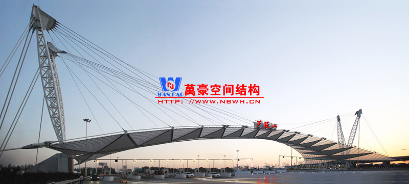 東常蘆荻山收費(fèi)站膜結(jié)構(gòu)效果圖,該結(jié)構(gòu)跨度大,造型別致,十分吸引人,有興趣做這種類型收費(fèi)站膜結(jié)構(gòu)的可以聯(lián)系我們哦。