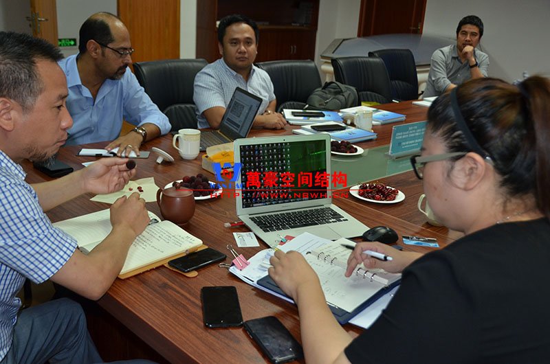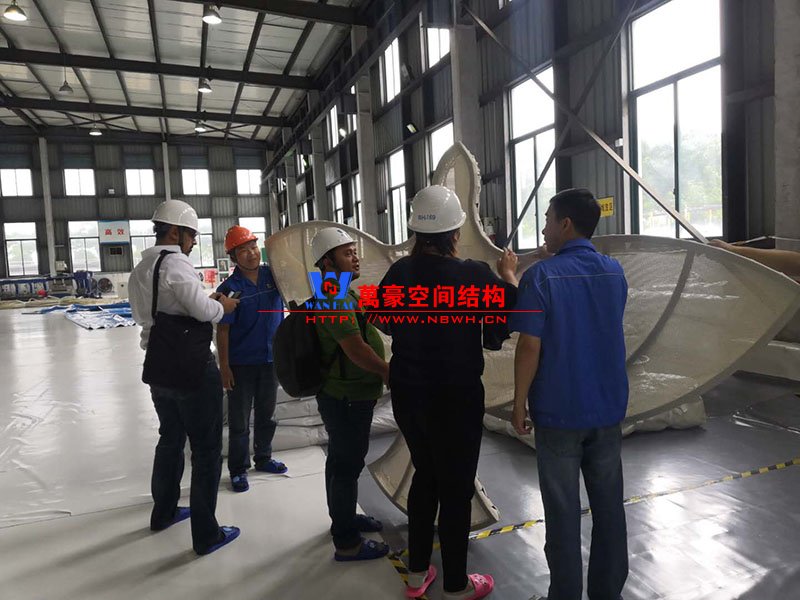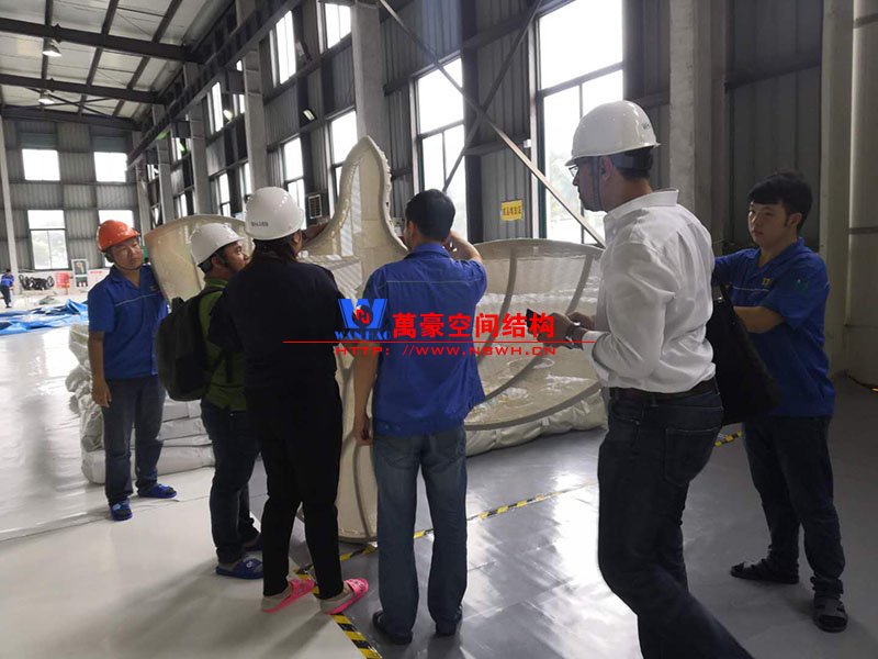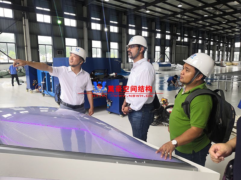 然后,我們陪同迪拜客戶參觀了公司膜結(jié)構(gòu)生產(chǎn)車間。