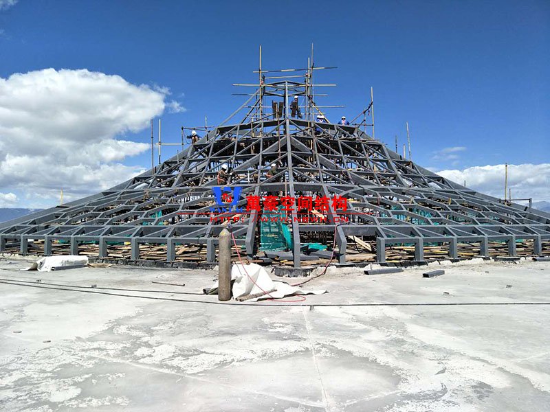 目前,觀光塔鋼膜結(jié)構(gòu)項(xiàng)目架子已搭建完畢,接下來(lái)要做的是防護(hù)工作。綜合辦公樓鋼膜結(jié)構(gòu)項(xiàng)目穹頂鋼構(gòu)預(yù)計(jì)月底之前完成;斜屋面已做好三個(gè)面,其中兩個(gè)面已做完油漆,預(yù)計(jì)七月中旬斜屋面鋼構(gòu)全部完成。