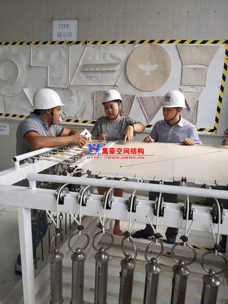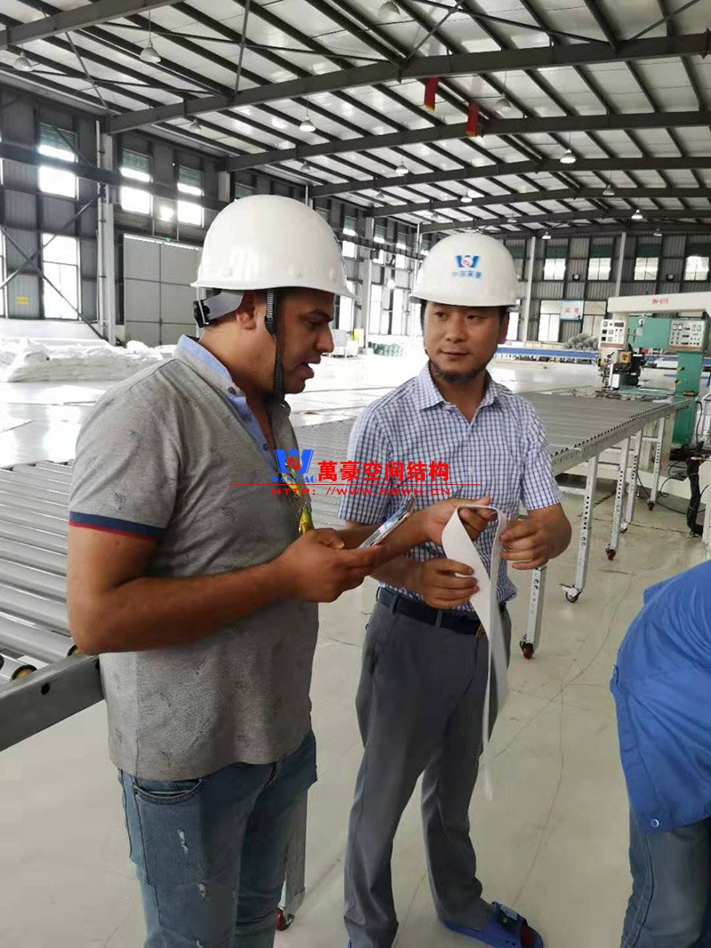 然后,我們陪同伊拉克客戶參觀了公司的膜結(jié)構(gòu)生產(chǎn)車間以及鋼結(jié)構(gòu)生產(chǎn)車間。