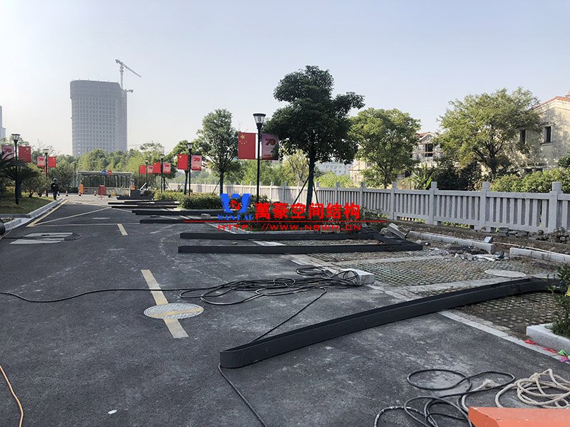 太屺3#地塊商務樓(慈溪市國力土地資源投資開發(fā)有限公司)地面膜結構車棚項目位于浙江省寧波市慈溪市,該項目膜結構展開面積2000平米,用鋼量50噸,由寧波萬豪空間結構工程有限公司承建。