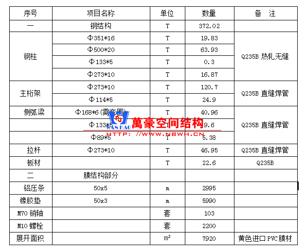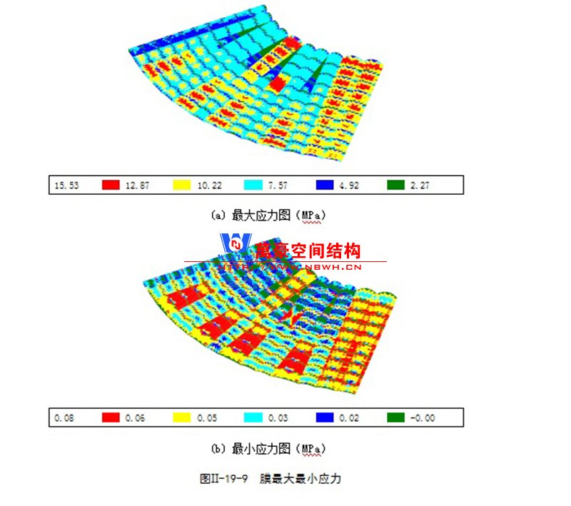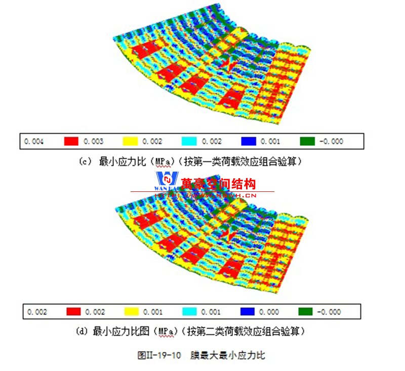 膜材強度設計值按第一類荷載效應組合驗算取 20.0MPa,按第二類荷載效應組合驗算取 40.0MPa。