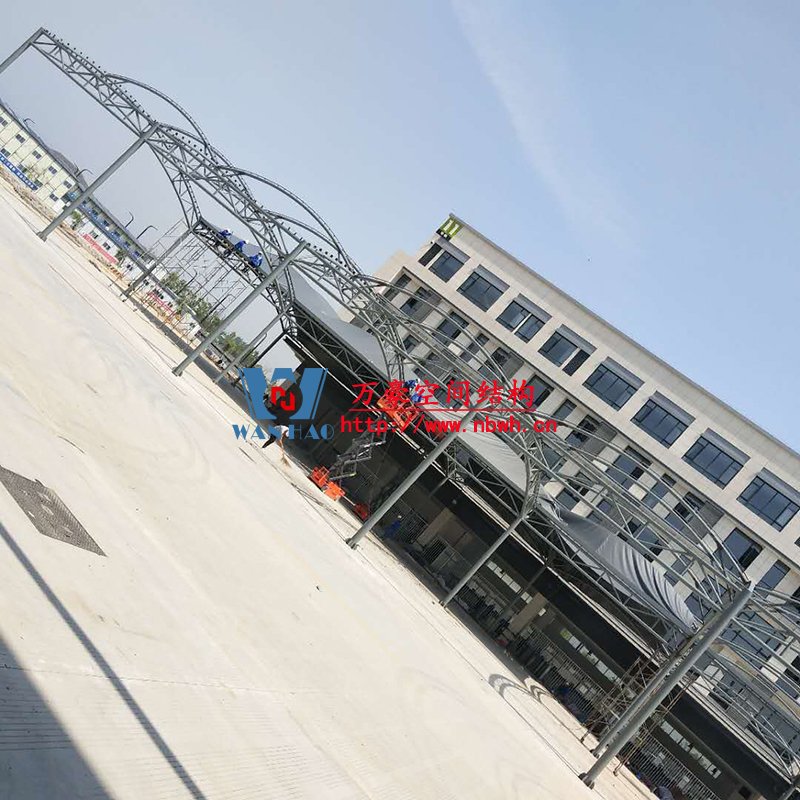 奉化方橋農(nóng)副鋼結(jié)構(gòu)雨棚工程位于浙江省寧波市奉化市內(nèi),此工程用鋼量100噸,膜結(jié)構(gòu)展開面積3500平米,由寧波萬(wàn)豪空間結(jié)構(gòu)工程有限公司承建。