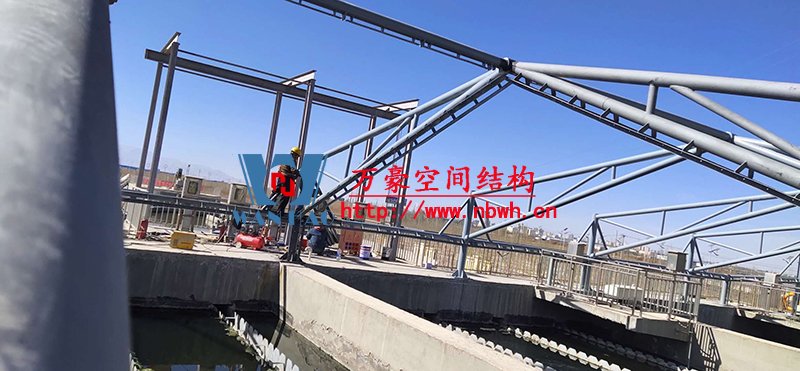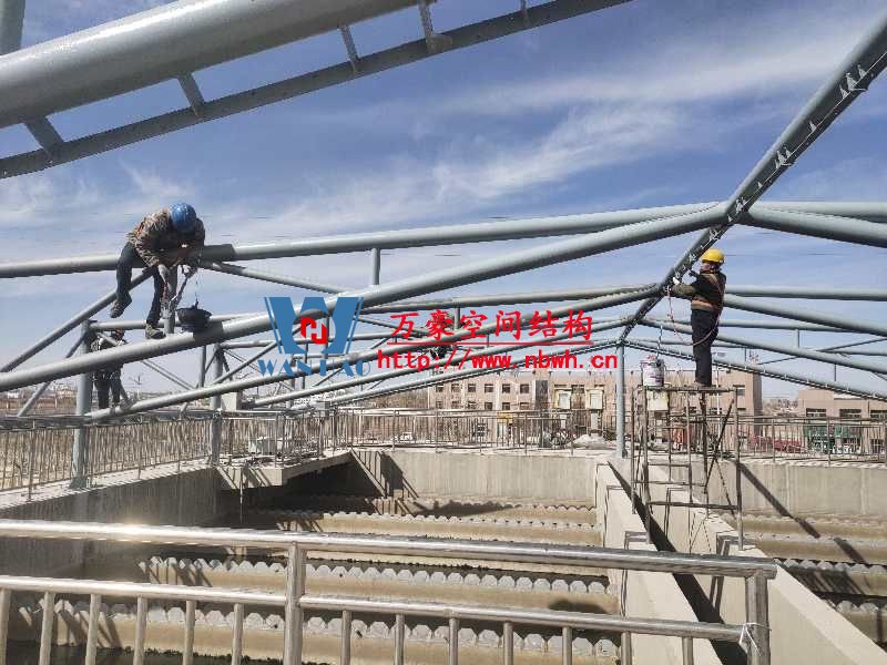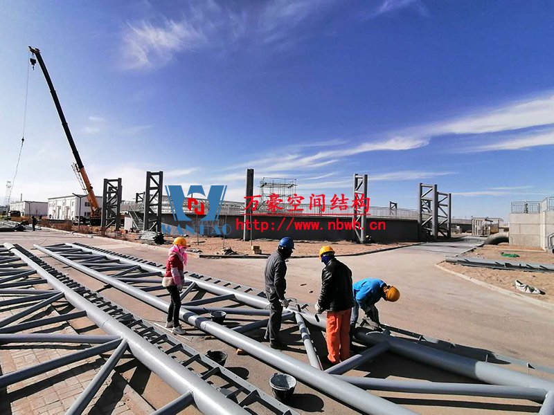 格爾木工業(yè)園昆侖工業(yè)區(qū)工業(yè)污水廠污水池保溫膜結(jié)構(gòu)工程預(yù)沉池和酸化水解池鋼結(jié)構(gòu)已完成