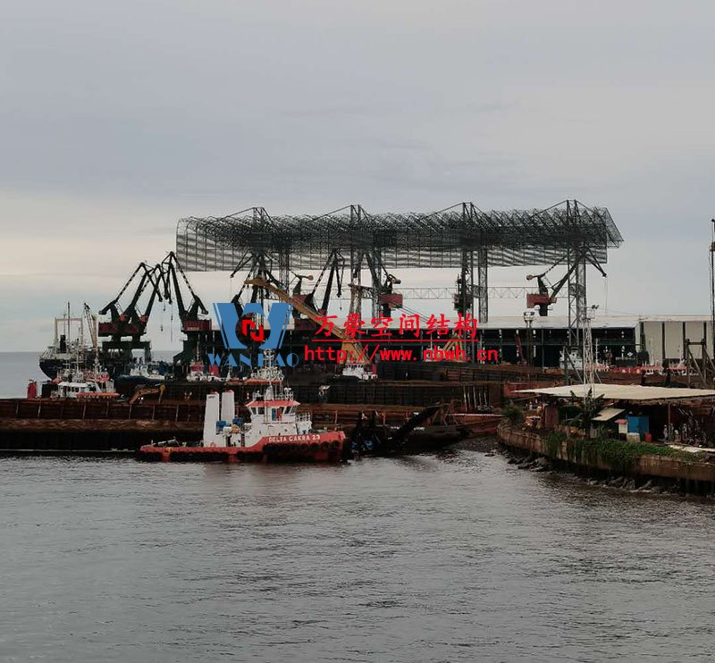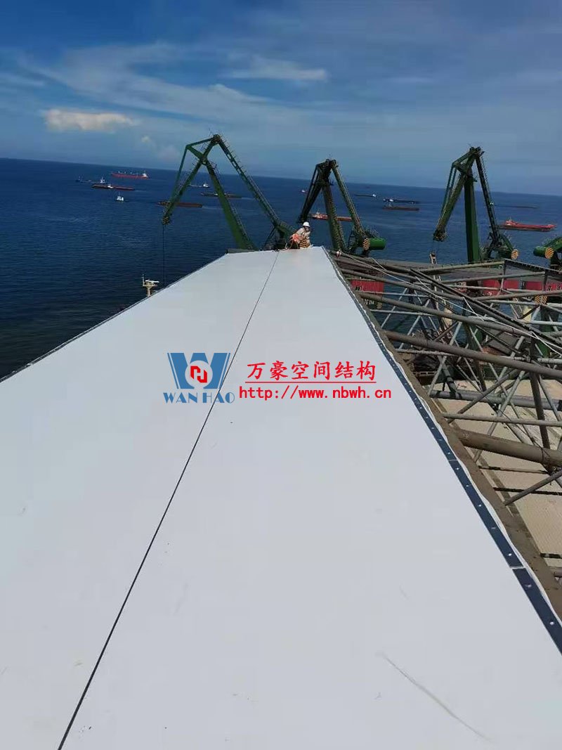 印尼全天候碼頭倉庫屋面膜結(jié)構(gòu)工程高度55米,跨度160米,采用鋼結(jié)構(gòu)地面整體拼裝,分區(qū)域整體起吊的安裝方式,鋼用量總共2000噸,膜結(jié)構(gòu)展開面積30000平米,屋面膜結(jié)構(gòu)工程由寧波萬豪空間結(jié)構(gòu)工程有限公司承建。 目前項(xiàng)目進(jìn)入膜結(jié)構(gòu)安裝階段,萬豪定不負(fù)眾望,再創(chuàng)輝煌。
