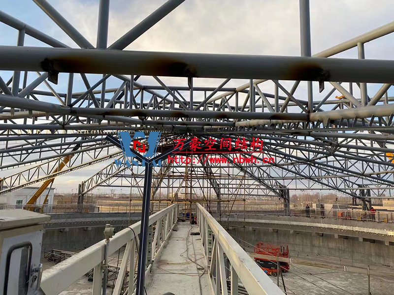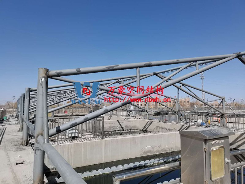 該工程主要建設(shè)格爾木工業(yè)園昆侖工業(yè)區(qū)工業(yè)污水處理廠首期2.5萬(wàn)立方米/天工程二沉池、水解酸化池和預(yù)沉池池體保溫膜結(jié)構(gòu)安裝。項(xiàng)目用鋼量230噸,膜結(jié)構(gòu)展開面積5000平米。