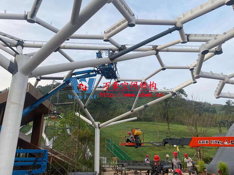 目前,售票口、檢票口已全部完成;6號商業(yè)街鋼結(jié)構(gòu)已全部完成,網(wǎng)片補漆,加焊也全部完成,準(zhǔn)備開始安裝膜結(jié)構(gòu)。