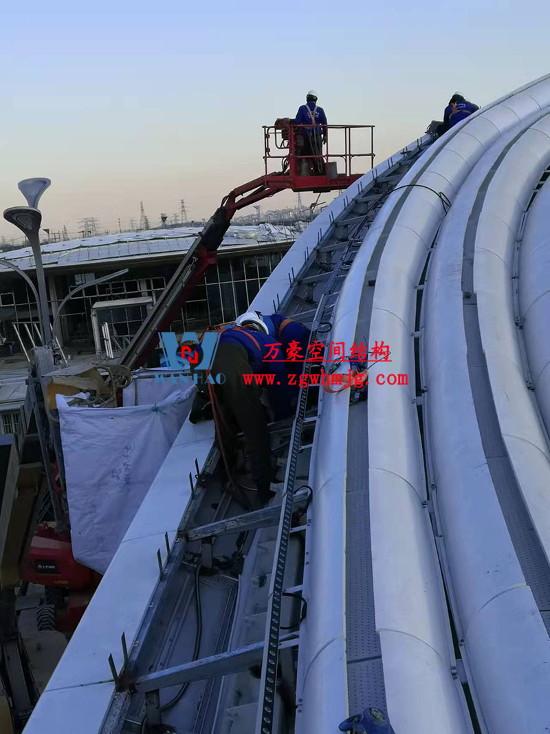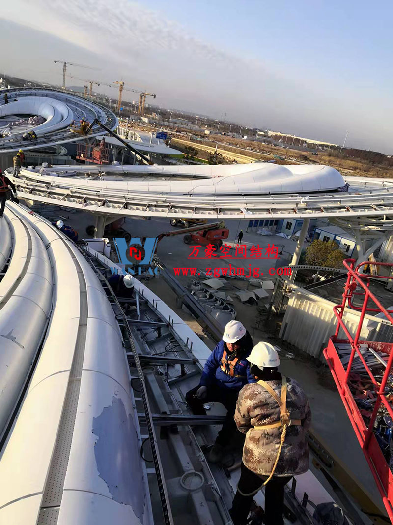 滬通鐵路張家港站地方配套工程-站前西側(cè)旅客集散區(qū)蝴蝶造型天幕工程擬建結(jié)構(gòu)為蘇州張家港高鐵站站前廣場蝴蝶造型雙曲面殼體膜結(jié)構(gòu),共分為大、小翅膀四部分。