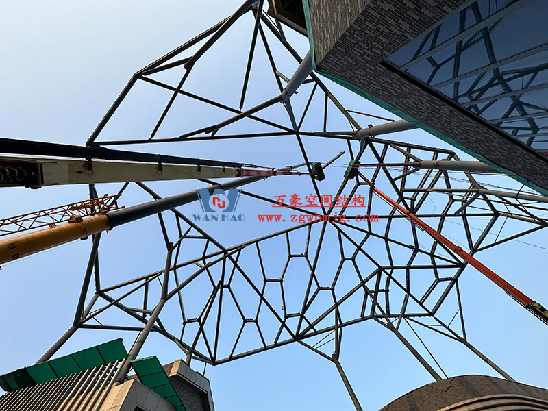 合肥文一塘溪津門天幕鋼結(jié)構(gòu)及ETFE氣枕膜工程鋼結(jié)構(gòu)吊裝中