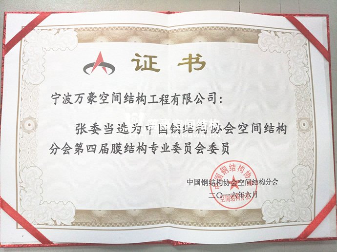 恭賀我司總經(jīng)理張委當選膜結構專業(yè)委員會委員
