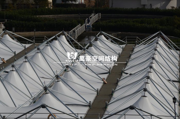 寧波北區(qū)污水處理廠廠址位于鎮(zhèn)海新泓口甬舟高速與化工區(qū)主干道交叉口附近,污水廠一期建設用地15.48公頃,膜結構加蓋面積達一萬多平方米。